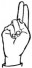 На ћирилици написано ВИОЛЕТА СЕКУЛОВ састоји се из 14 слова [?]. Исписано ћириличном једноручном азбуком за глувонеме: